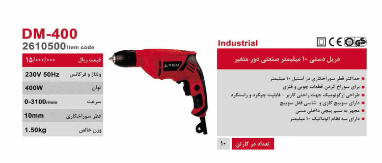 دریل ۱۰ میلیمتر ۴۰۰ وات محک مدل DM-400