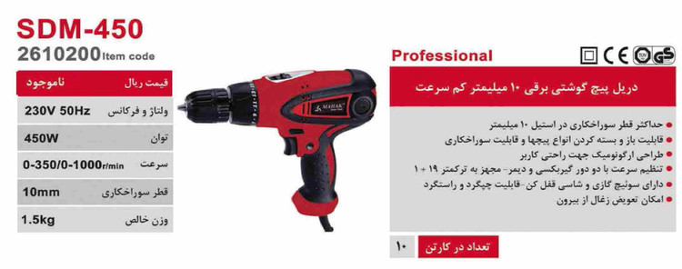 دریل پیچگوشتی برقی محک ۱۰ میلیمتر مدل SDM-450