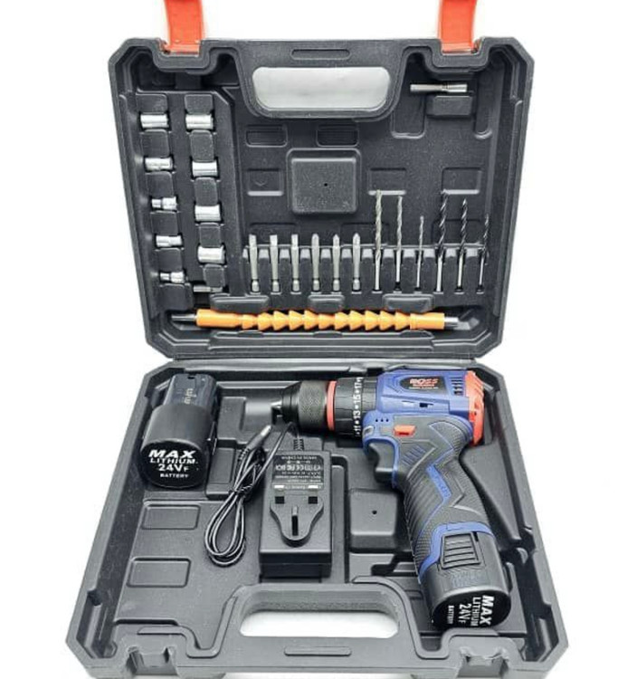 ✔ به همراه لوازم همراه؛ مته آهن( سایز ۴، ۵ و ۶ میلیمتر)، مته چوب( سایز ۳، ۴ و ۵ میلیمتر)، رابط فنری تاشونده، سه عدد نوک پیچگوشتی چهارسو، سه عدد نوک پیچ گوشتی دو سو، تبدیل بکس خور سر دریلی سایز ۱/۴، بکس سایز ۵، ۶، ۷، ۸، ۹، ۱۰، ۱۱، ۱۲ و ۱۳