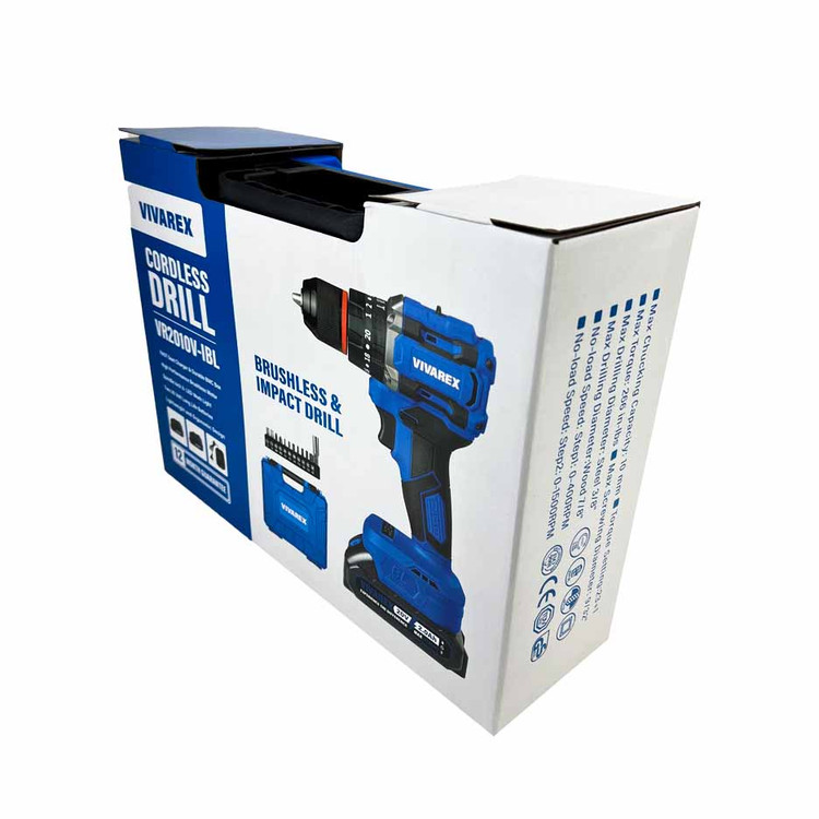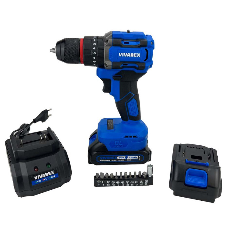 دریل شارژی چکشی دو باتری براشلس ۲۰ ولت ویوارکس مدل VR2010V-IBL
