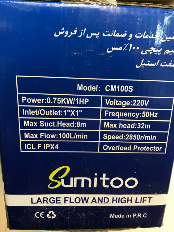 پمپ آب ۱ اسب بشقابی سومیتو مدل CM100S